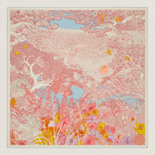FOULARD HERMÈS LA NATURE Cachemire de soie rose