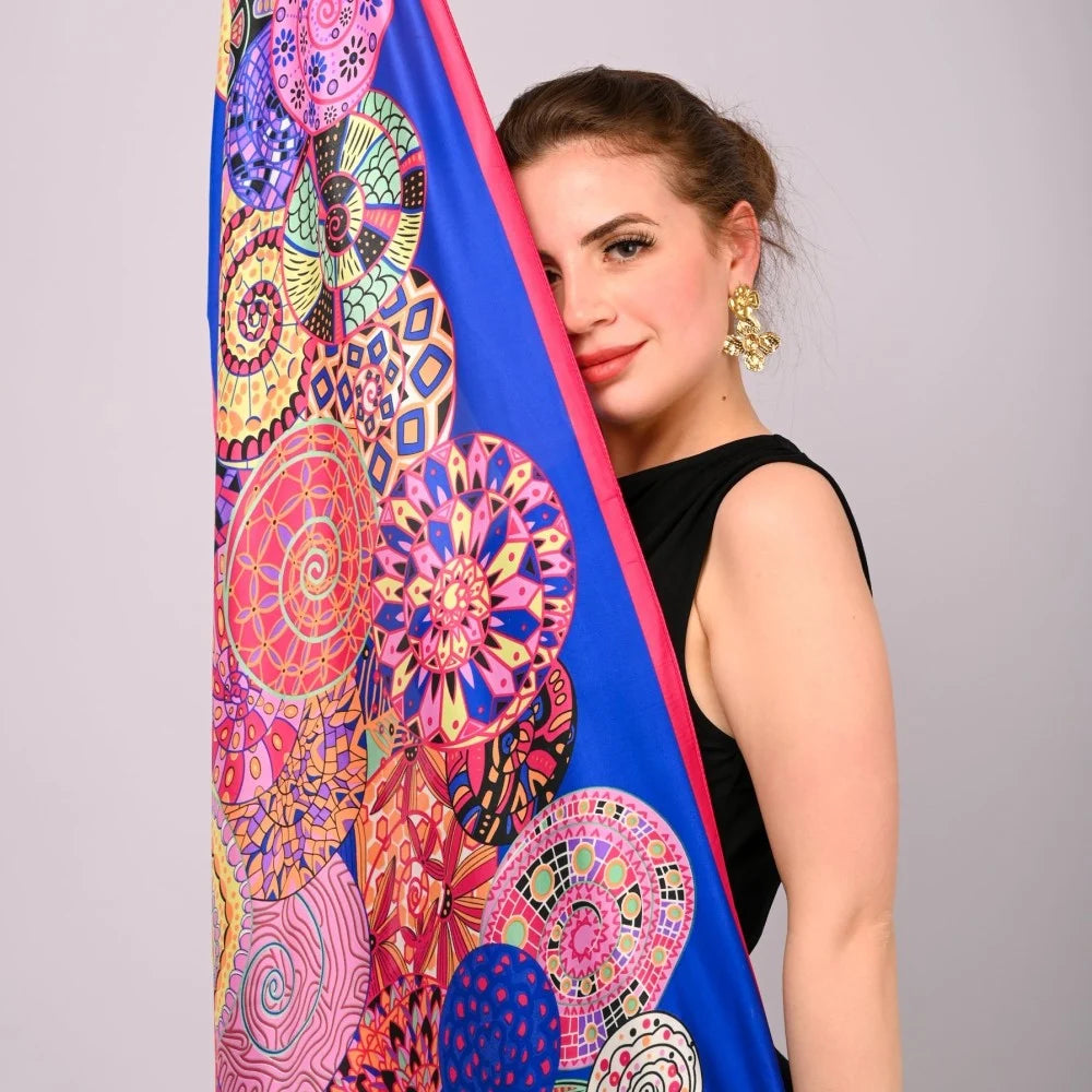 Châle "BLUE DAISY" effet soie à motifs