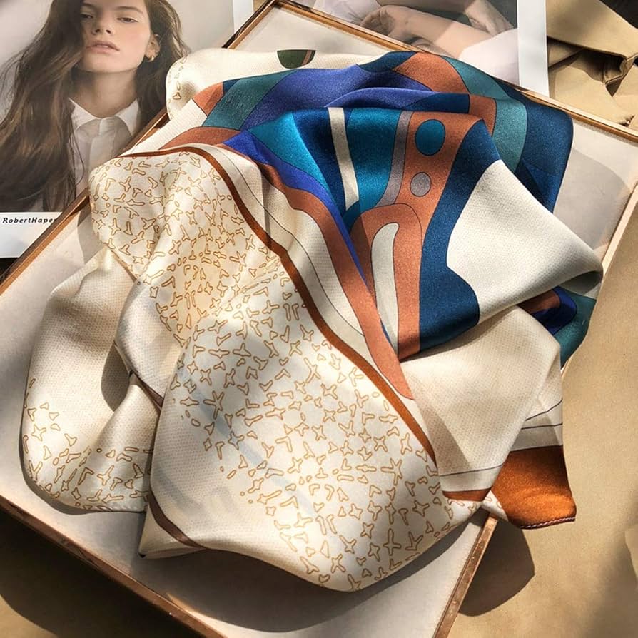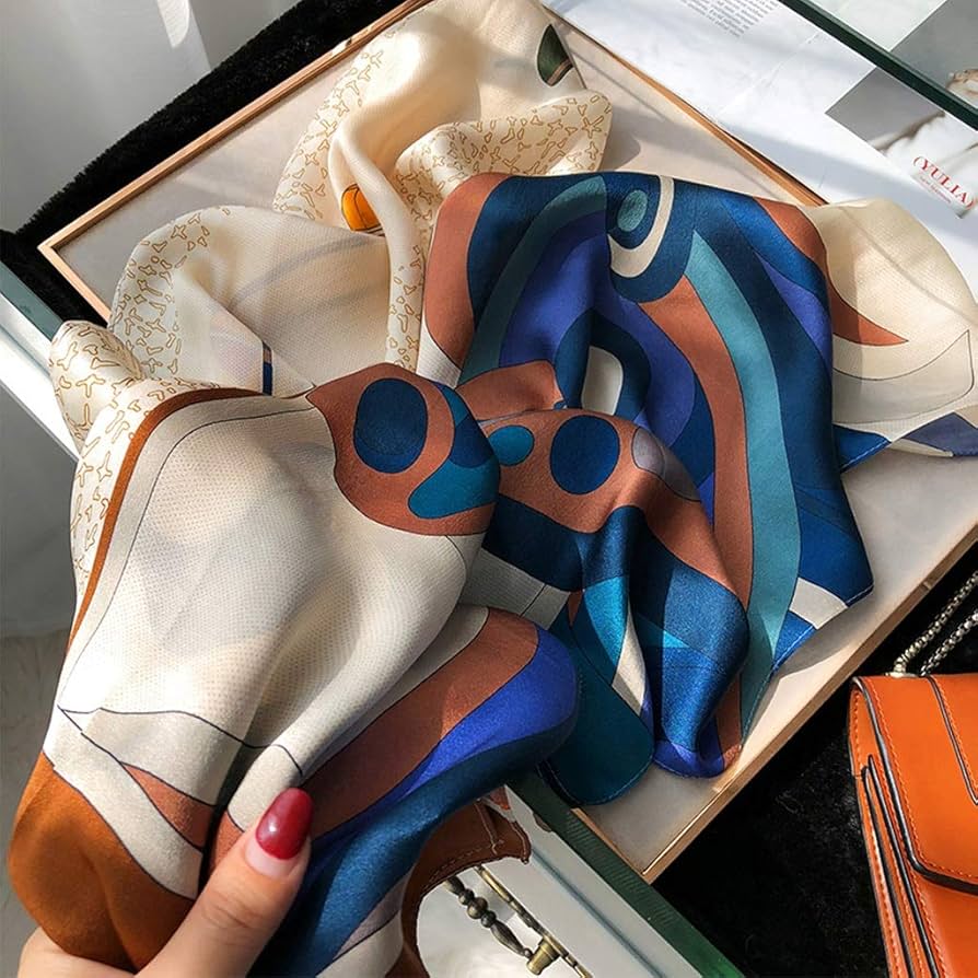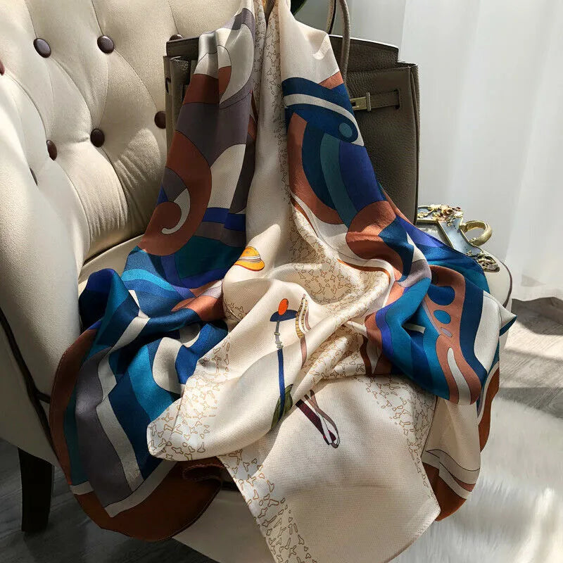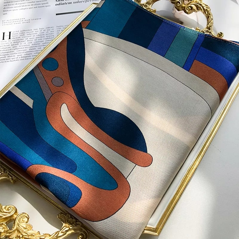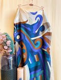 Châle "BLUE HALO" effet soie à motifs