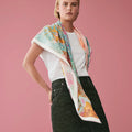 Imprimé sur notre emblématique support de cachemire de soie, ce foulard est souple et léger, facile à porter. Fraîches journées ou douces soirées, c'est le compagnon idéal pour s'envelopper.