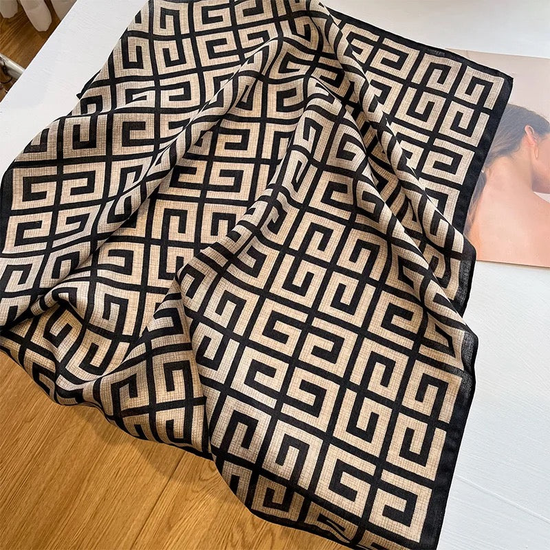 Découvrez notre élégant foulard en laine fine, conçu pour vous envelopper de douceur et de style. Ce modèle unique présente un design réversible : chaque face arbore un motif distinct, vous offrant deux looks en un accessoire. Que vous soyez d'humeur à afficher un motif classique ou un imprimé plus audacieux, ce foulard s'adapte à toutes vos envies. Léger mais chaud, il est idéal pour toutes les saisons, ajoutant une touche de sophistication à votre tenue. Un accessoire indispensable pour allier confort, élégance et versatilité